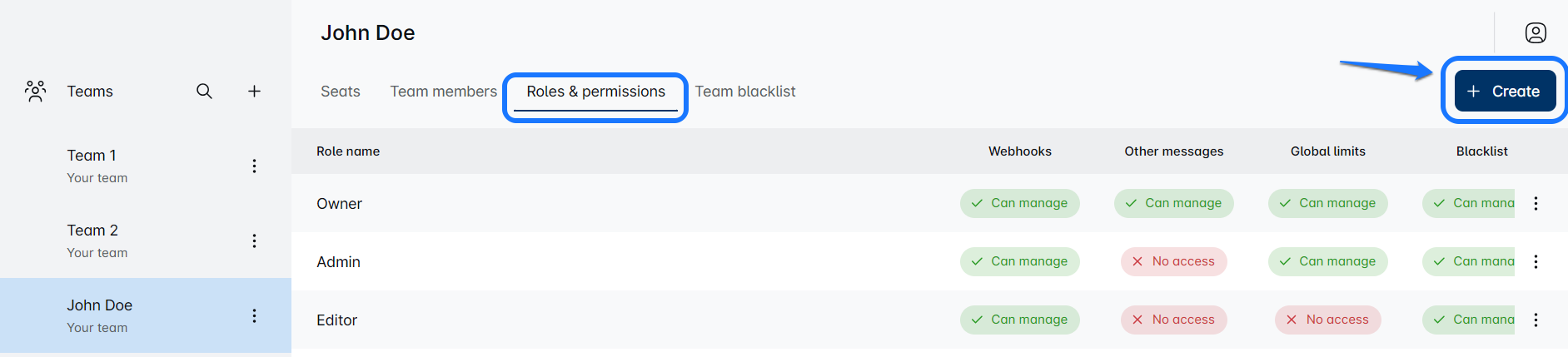 Head to 'Roles & Permissions,' hit 'Create,' and select permissions like campaign management, message handling, or blacklisting. You can even set roles to view-only for observational access. With Custom Roles, you can ensure each team member has the right tools and level of access, enhancing efficiency and organization. Enjoy the flexibility to shape team roles to your exact specifications!✈️🌟