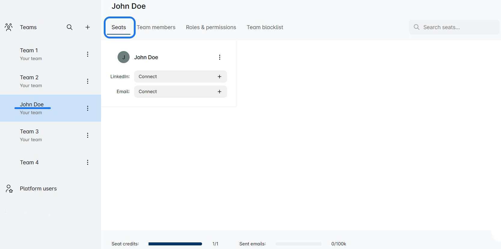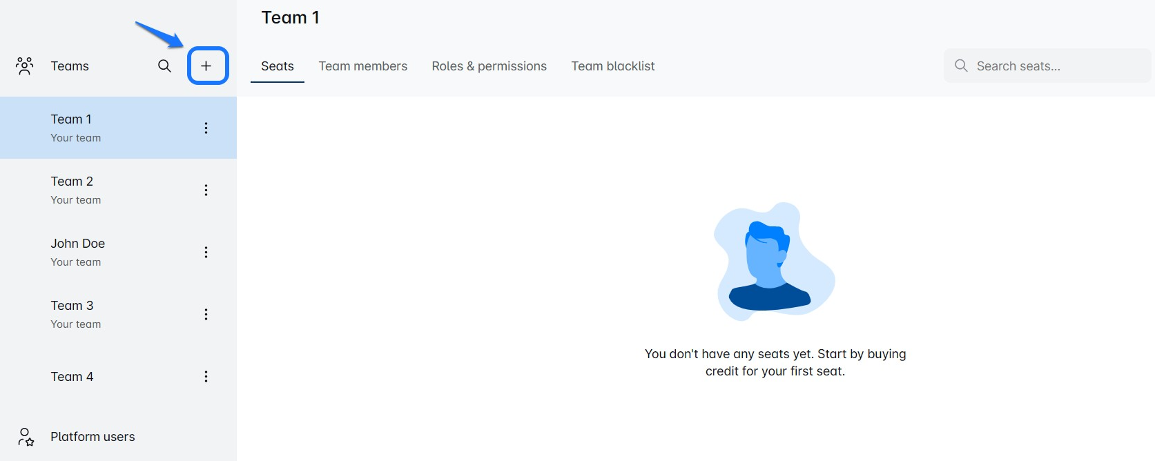 Your first team auto-creates with your registration, and expanding is easy—add new teams anytime from the main menu. The platform view lets you quickly access team and seat details, making managing your team’s growth effortless. Dive in and build a productive team today! ✈️🌟