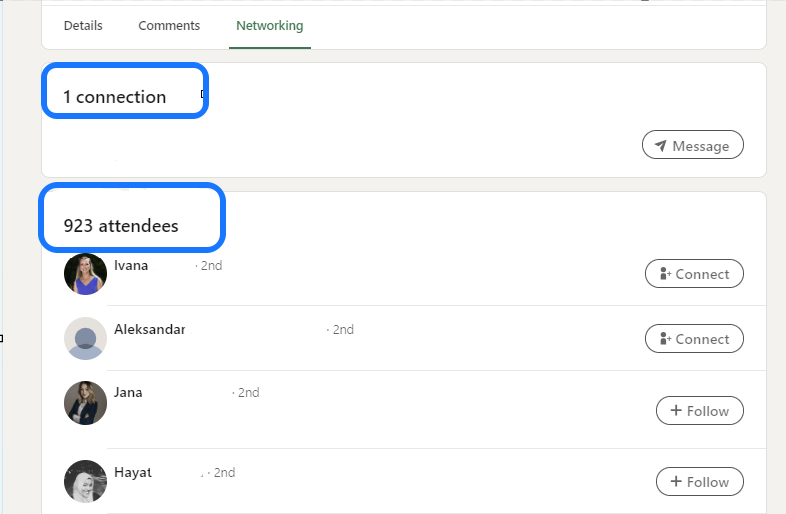 For Different Event Types: If you’re looking for different types of events, the attendees will be located in the Networking Tab.